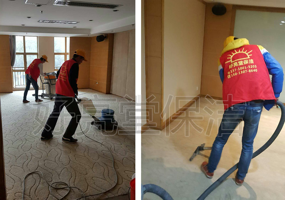 6、在給地毯清洗的同時,用吸水機吸凈已完工的部門。