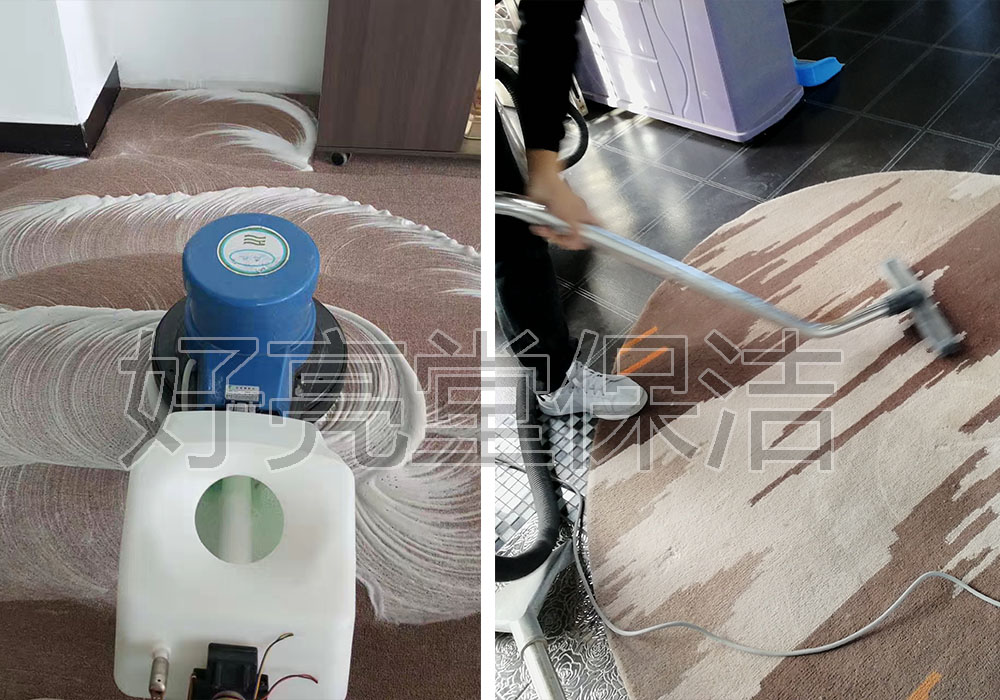 5、用裝有打泡器、地毯刷的單盤掃地機,以干泡洗擦地毯